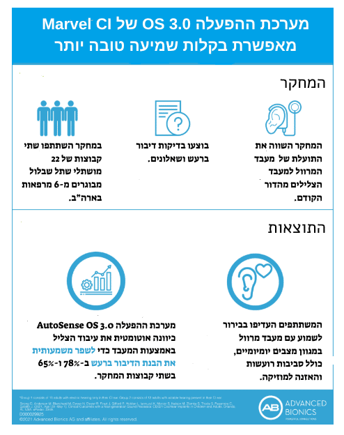 מדיבור ועד מוזיקה, שתלי השבלול (CI) של Advanced Bionics נועדו לספק איכות צליל מעולה. מעבד הצלילים החדש ביותר שלנו – Marvel – יעיל, אמין וגמיש, הינו הבחירה המועדפת בקרב מוזיקאים, מהנדסים והורים לילדים צעירים.