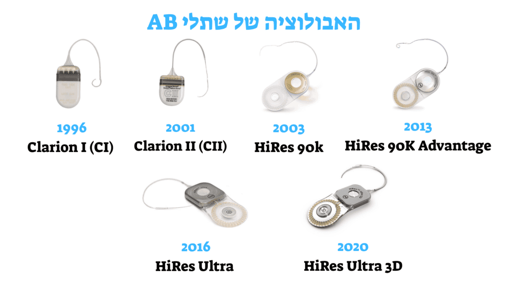שתל שבלול מהדור הראשון של AB שאושר לראשונה למבוגרים בשנת 1996. כבר עם שתלי Clarion התאפשרו שדרוגים טכנולוגיים עתידיים.